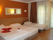 Размещались в семейном номере, в отдельном 3-х этажном корпусе. Уборка номера отвратительная: вся уборка заключалась в лебеде на кровати и разметанием мусора по углам. Постельное белье сменили только на 2-х спальной кровати, на двух детских не меняли. Кондиционер центральный. Когда он работает из него валит воздух с запахом...