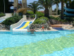 Территория зеленая, достаточно большая. Хоть людей и было много, но всем хватало места как и на пляже, так и у бассейна. Не нужно было вставать в 7 часов, чтобы занять себе лежак. Очень красивая природа, плывешь в море и глядишь прямо на гору Олимпос, вода прозрачная, при входе галька.