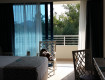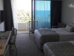 Большой, боковой вид на море, балкон огромный, можно танцевать. Две полуторные кровати, которые можно сдвинуть, для ребенка раскладушка, но неплохая.