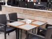 В ресторане неудобные низкие столы, как будто ешь у себя на коленках, убогие подстилки вмпсто скатерти на столах