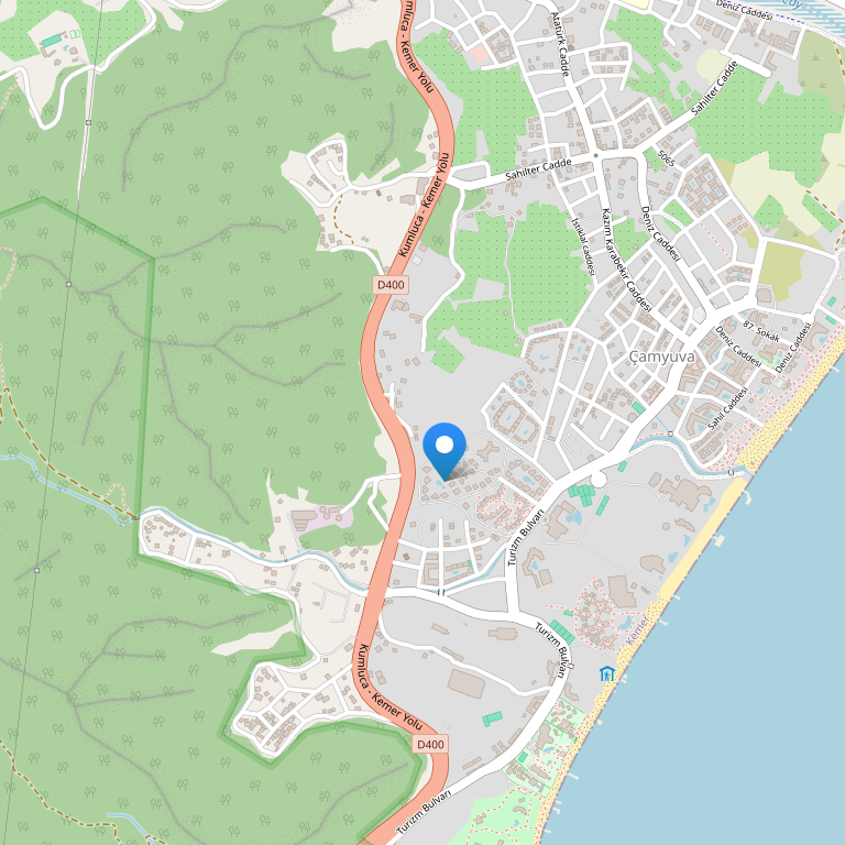 Расположение: в поселке Чамьюва, в 7 км от Кемера, в 65 км от аэропорта, 50 км до старого города Анталии. Отель располагает большой территорией в 16 гектар с многочисленными зелеными зонами. Рядом с отеле проходит поселковая дорогая, с маршрутными автобусами до Кемера и Анталии, есть стоянки такси.Год основания 1999 г. Реновация вилл 2023 г.