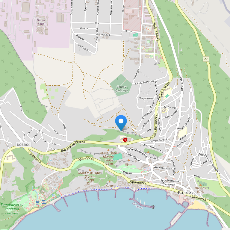 Отель расположен в уютном и укромном местечке на небольшой возвышенности, рядом с остановкой общественного транспорта, на расстоянии всего 1,3 км от пляжа, что находится в городе Балчик, также гости отеля, желающие поиграть в гольф, могут посетить поле для гольфа Thracian Cliffs, что расположено примерно в 3 км от отеля, а вот что бы добраться до аэропорта Варны, необходимо проехать 40 км на транспорте.
