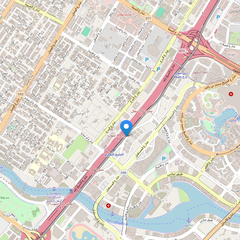 Отель расположен на знаменитом шоссе шейха Зайда в деловом центре Дубая, рядом с Dubai Financial City, в 5 минутах ходьбы от станции метро, в 7 км от международного аэропорта Дубай, в 3 км от торгового центра Dubai Mall и самого высокого здание в мире Burj KHalifa, в 4 км от Media City и Internet City и в 15 км от экономической зоны Jebel Ali Free Zone. Общественный пляж – примерно в 10 минутах езды.