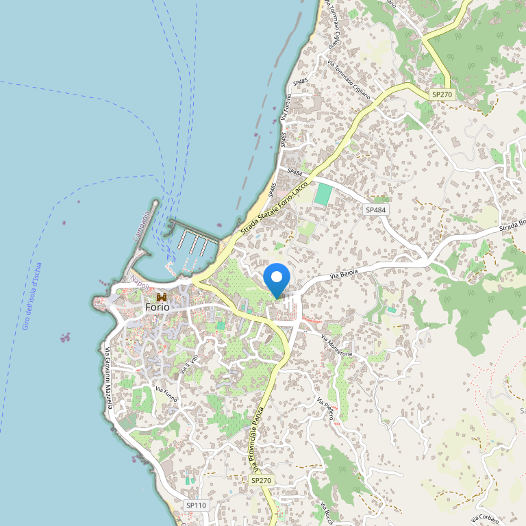 Отель расположен недалеко от порта Форио, одном из крупнейших городков о.Искья, в Неаполитанском заливе, Тирренского моря, всего в 40 км от Неаполя.