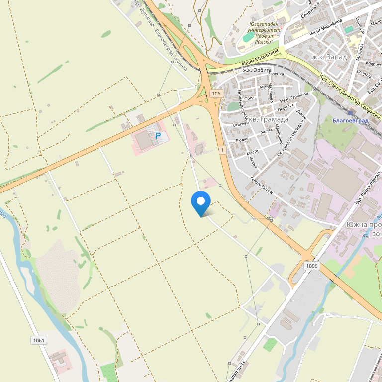 Мотель West расположен в городе Благоевград. Расстояние до центра города составляет всего 1 км. Благодаря близости мотеля к центру города, все необходимое находится рядом - магазин в 300 метрах, ресторан - в полукилометре, такое же расстояние составляет до университета имени Неофита Рильского. В пяти минутах ходьбы расположены авто и железнодорожный вокзалы. Некоторые местные достопримечательности находятся также недалеко от мотеля.