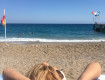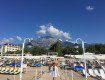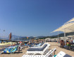 Пляж галечный, лежаков всем хватает.