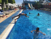 Бассейн грязный, обслуживаний персонал из шланга смывали всю грязь с плитки в бассейн.