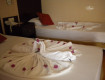 Разместили в номере на 3 этаже, номер маленький, а мансарда его еще больше уменьшает, при заезде не работал холодильник и засорена была раковина, в ванной нет шапки для душа и стакана под зуб. щетки, ставить шампунь и гель, постоянно забывали.