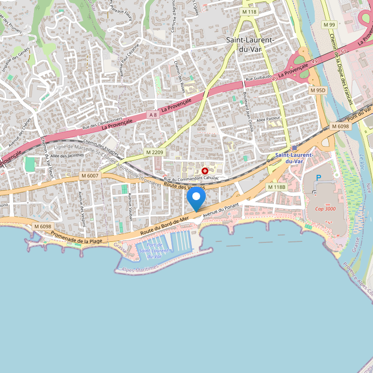 Отель находится в маленьком курортном городке Port St. Laurent в 3 км от аэропорта Ниццы и 10 км от центра города.
