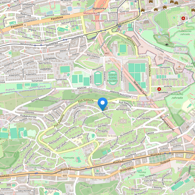 За 10 минут можно доехать до стадиона Страхов, где есть парк, бассейн и сауна.