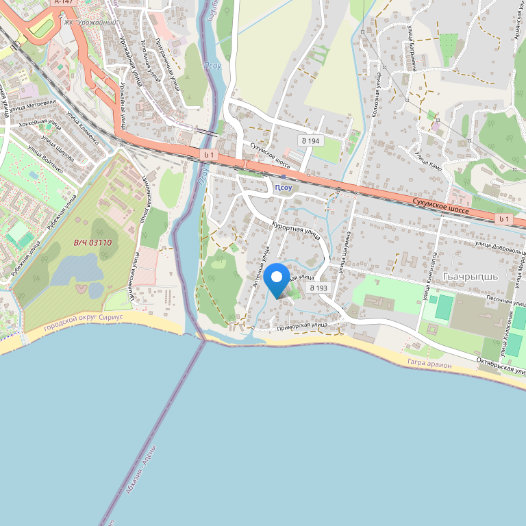 Отель расположен на Черноморском побережье, в живописном городе Гагра, на расстоянии5-ти минутной обзорной прогулки от берега моря, всего в 20-ти минутах ходьбы от ж/д вокзала Гагра, в 35 км от Адлера, а вот что бы добраться до Красной поляны, необходимо проехать 45 км на транспорте.