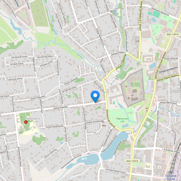 Отель расположен в городе Сергиев-Посад, неподалеку от основных туристических достопримечательностей, ресторанов, баров и магазинов, на расстоянии 36 км от города Пушкино и 48 км от города Королев, в 71 километре от Москвы.