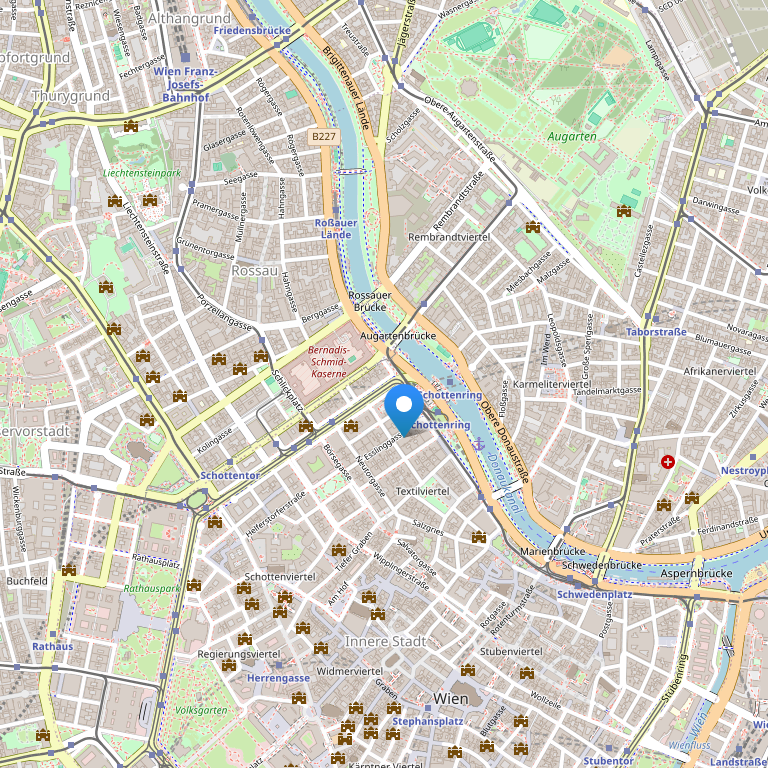 Отель расположен в центре Вены, в непосредственной близости к Собору Св. Стивенса. Поблизости находится остановка общественного транспорта и подземная станция SCHOTTENBRING.