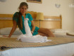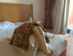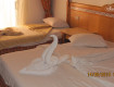Номер расположен удобно, 1 этаж,но душ своеобразный,плохо регулировался и шторка маленькая,когда моешься весь пол мокрый.По т/в 3 русских канала.Уборка каждый день,2 раза скрутили лебедя и 1 раз сердце.