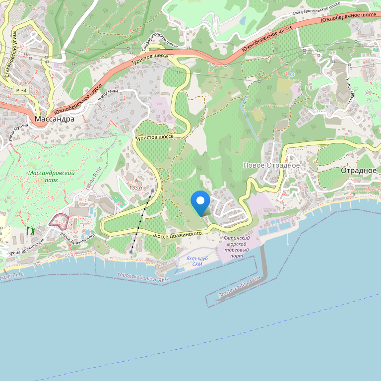 Отель расположен на побережье Черного моря в городе Ялта, на расстоянии 4 км от Ялтинской набережной и Никитского ботанического сада, а вот чтобы добраться до дворца Массандры и винному заводу необходимо проехать всего лишь 5 минут на транспорте.