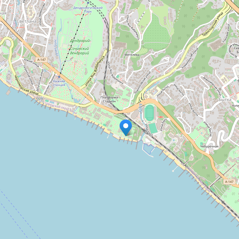 Этот отель с выходом на пляж и открытым бассейном расположен в центре Сочи, в 10 минутах ходьбы от Дендрария. Международный аэропорт Сочи расположен в 20 км от отеля. До железнодорожного вокзала Сочи — 5 км.