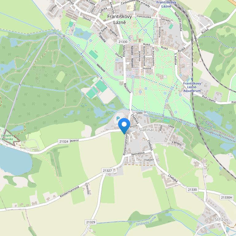 Отель расположен на окраине знаменитого курорта города Франтишковы Лазни, который известен своим первыми спа-грязями, недалеко от центра города. Город известен как город-сад, где зелень и парки так же важны, как и архитектура. Город находится на высоте около 450 метров. Отель предлагает комплексный уход за санаторно-курортным лечением, с использованием местных ресурсов и природной минеральной воды из местного источника Штепанек.