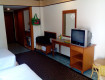 Номер просторный с небольшим балконом. Туалетная комната с умывальником и душем. В номере есть телевизор, фэн, холодильник, сейф и персональный кондиционер.