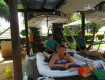Приехали в отель поздно. Наш отель был первый. Было уже темно. Заселили нас быстро. Территория там компактная. Везде подсветка. Мы сошлись во мнении, что местоположение нашего бунгало самое удобное. Крыльцо и окно выходило прямо к бассейну. 5 шагов от двери и ты уже в бассейне! Мы бросили вещи и бегом побежали есть тайскую...