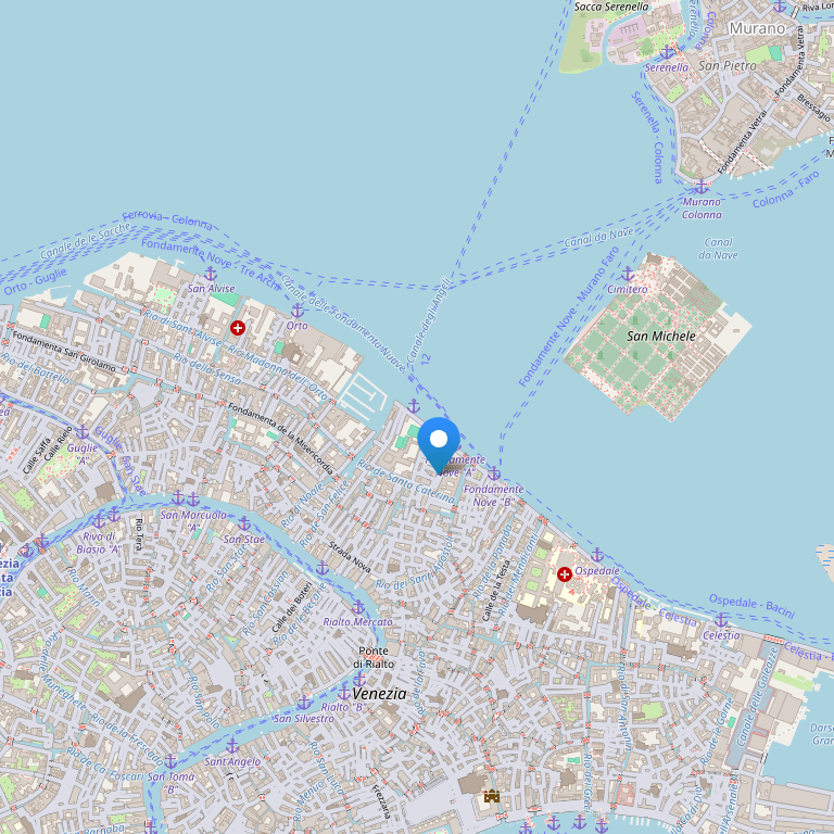 Отель расположен в центре Венеции, в 5 км от международного аэропорта Марко Поло, в 1 км от железнодорожного вокзала Santa Lucia.