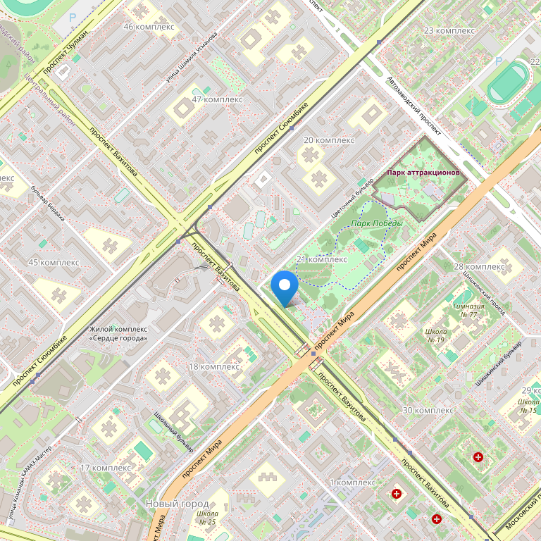 Отель расположен в самом центре Набережных Челнов, в 5 минутах езды от генеральной дирекции ОАО «КАМАЗ», деловой и административной части города. При этом отель находится в самом экологически чистом районе автограда, благодаря соседству с парком Победы.