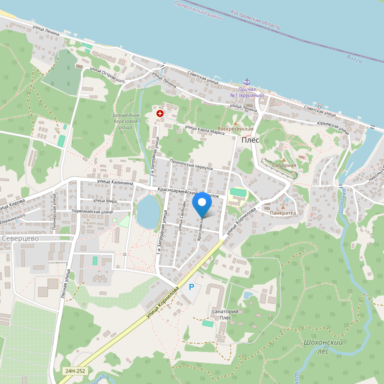 Отель расположен в историческом центре города Плеса, рядом с художественным музеем и автобусной остановкой, на расстоянии 10-ти минутной обзорной прогулки от кафе, баров и магазинов, а также от такой важной достопримечательности, как Успенский собор. Отель находится всего в 300 метрах от автовокзала и городского рынка, в 70 км от железнодорожного вокзала Иваново.