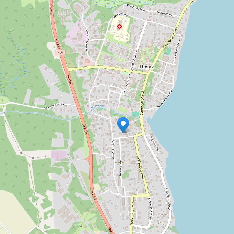 Отель расположен в 500 м от трассы, в посёлке городского типа Пряжа (центр) и в 40 км от Петрозаводска, недалеко от побережья красивого Пряжинского озера. Отличное место ночлега для тех, кто едет на машине дальше, на север.