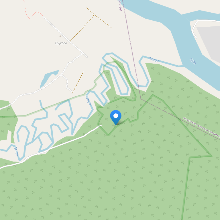 База отдыха расположена в экологически чистом районе, в 50 км от г. Череповца, рядом с песчаным берегом реки Петух, русло которой проходит непосредственно по территории базы.