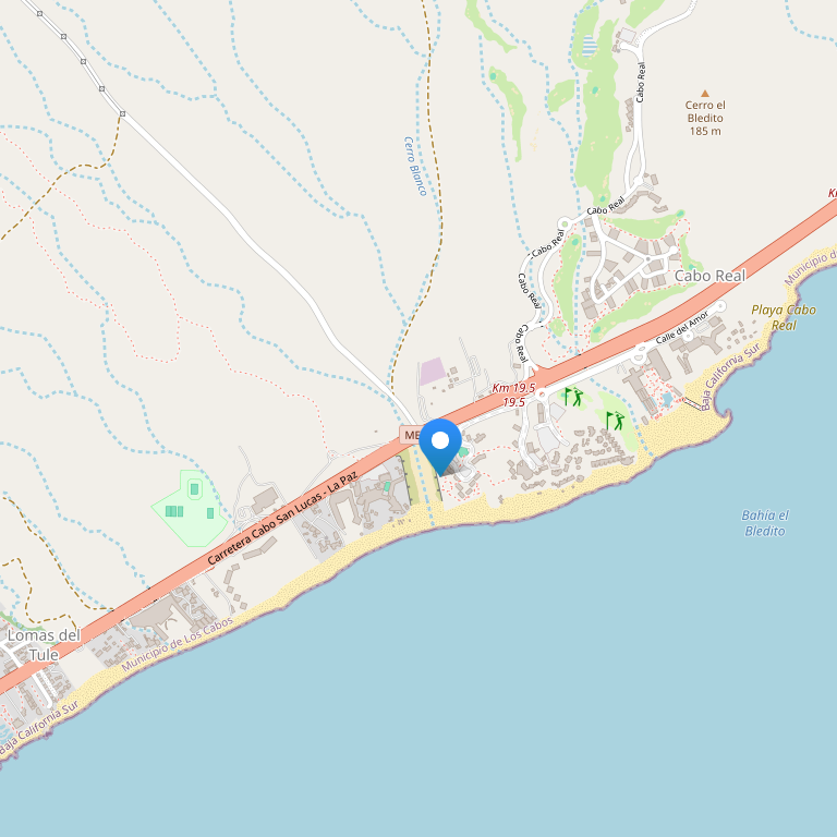 Отель расположен между San Jose Del Cabo и Cabo San Lucas. Международный аэропорт находится в 25 минутах езды от отеля.