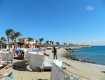 Отель находиться на 2-й линии. До пляжа если пешком то 5-7 минут через дорогу и по территории другого отеля Альбатрос. Мы ездили на автобусе отеля, ходит он каждые 15 минут. Пляж хороший, места хватает всем, но шезлонги в вашем распоряжении только по левой стороне пляжа. Так же по левой стороне пляжа находиться пирс...