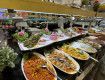 , красная рыба,сельдь, морепродукты..Овощи/зелень-все есть.Фрукты: выбор не богат конечно , но для меня это не является минусом, не особо из люблю)есть яблоки, бананы, арбузы, сливы, дыни)Территория отеля огромная(это скорее плюс, пока дойдешь от номера до...
