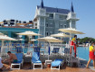 Отель огромный, лежаков всегда полно, горки отличные, спасателей много и не спят, до пляжа автобус практически не ждёшь, там тоже и кормят, и лежаки всегда...