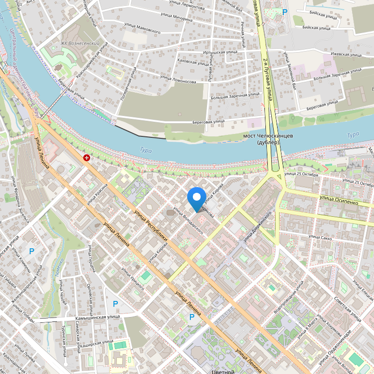 Отель расположен в самом центре города Тюмени на берегу реки Тура. Рядом находятся Драматический и кукольный театр, цирк, Тюменская Государственная филармония.