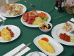 Завтрак: обычный, каждый день фрукты, яйца, хлеб, оладушки. Вкусно!
