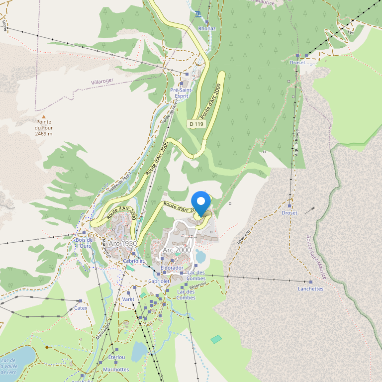 Отель расположен в центре альпийской деревушки Arc 1950. Горнолыжные трассы вплотную примыкают к входам в отель.