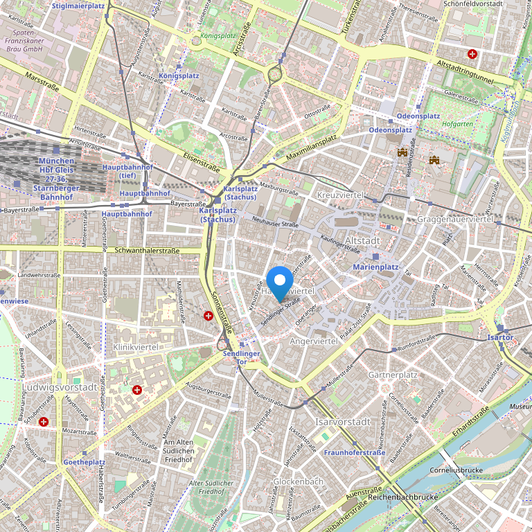 Вам обязательно понравится идеальное месторасположение рядом с 2 главными мюнхенскими площадями: Карлсплац и Мариенплац. Рядом со зданием отеля находится станция скоростной железной дороги (S-Bahn) Karlsplatz/Stachus, с которой Вы без пересадок доберётесь до аэропорта.