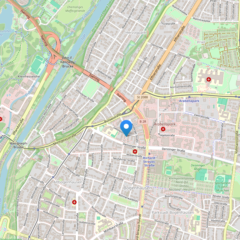 Отель расположен в районе Мюнхена Богенхаузен, всего в 400 метрах от станции метро Arabellapark. До главного железнодорожного вокзала Мюнхена можно добраться на метро за 11 минут. Отель, построенный в 1969 г, является составляющей частью туристического комплекса, в который входит также несколько магазинов, офисов и частных апартаментов. Комфортабельный 22-этажный отель известен как один из самых красивых отелей Европы, за свой оригинальный дизайн отель отмечен международной наградой в 2004 г. Недалеко от отеля расположено множество бутиков, ресторанов, кинотеатров, баров.