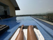 На крыше бассейн,шезлонгов,зонтов и полотенец еще не было.
