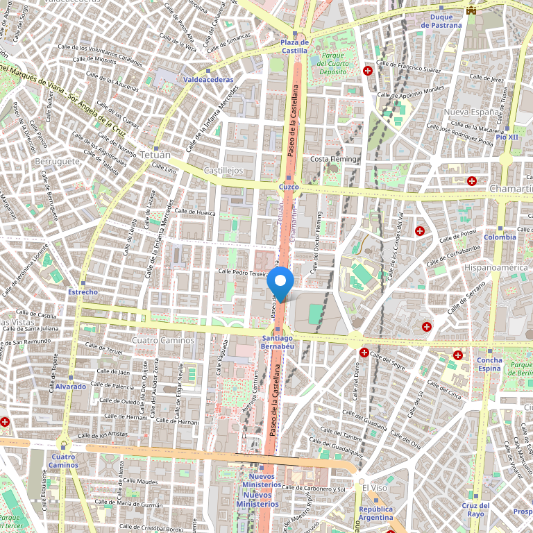Отель Holiday Inn расположен в самом центре Мадрида, в деловом и финансовом районе, между площадьюCuzco and Orense, в 200 метрах от знаменитого стадиона Сантьяго Бернабеу. Идеально подходит для деловых поездок благодаря его близости к крупным компаниям, как BBVA, Banco Popular, KPMG, Siemens, Glaxo Smith Kline. В 20 минутах езды от аэропорта International Airport Barajas и IFEMA Fairground.