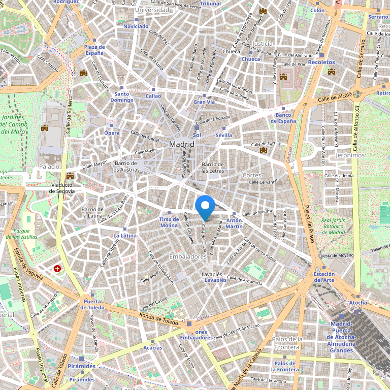 Отель High Tech Petit Palace Posada del Peine расположен рядом с центральной площадью Пласа Майор, недалеко от площади Пуэрта дель Соль, в историческом центре города. Самый старый отель в Испании, построенный в 1610 году.