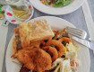 •Очень вкусная, разнообразная еда. Столько блюд, не перепробовать. Мороженое, фрукты, сладости.