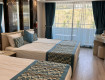 Номер хороший, с одной двуспальной и двумя односпальными кроватями, малой расправили софу. Все уместились. Два туалета, два кондерционера, холодильник, балкончик. Огорчили не много сколы на мебели и местами...