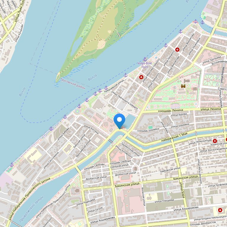 Здание гостиницы находится в самом сердце Астрахани: в радиусе 5 минут ходьбы располагаются самые главные достопримечательности города: Астраханский Кремль, центральные площади: Ленина и Октябрьская, Лебединое озеро и центральная набережная.