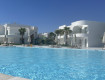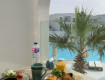 Территория отеля очень красивая, стильная, в греческом стиле, все в белых тонах.