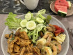 Завтраки отлично до 11, многие приходили второй раз как на обед)), креветки, мидии, фрукты манго, папайя, личи, бананы,...