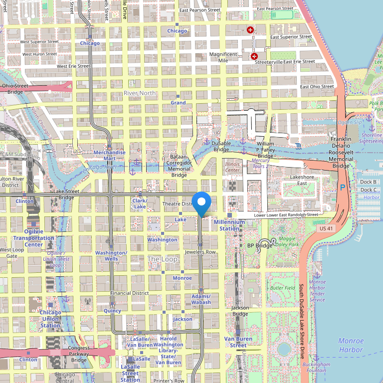 Отель расположен на 151 East Wacker Drive, в сердце центра Чикаго на так называемой Великолепной Миле (Magnificent Mile), прямо рядом с Авеню Мичиган у Чикагской набережной, обращенной к реке и озеру Мичиган. Hyatt Regency - один из самых больших отелей сети Hyatt и самый большой в городе отель с идеальным местонахождением для посещения самых интересных мест в Чикаго.
