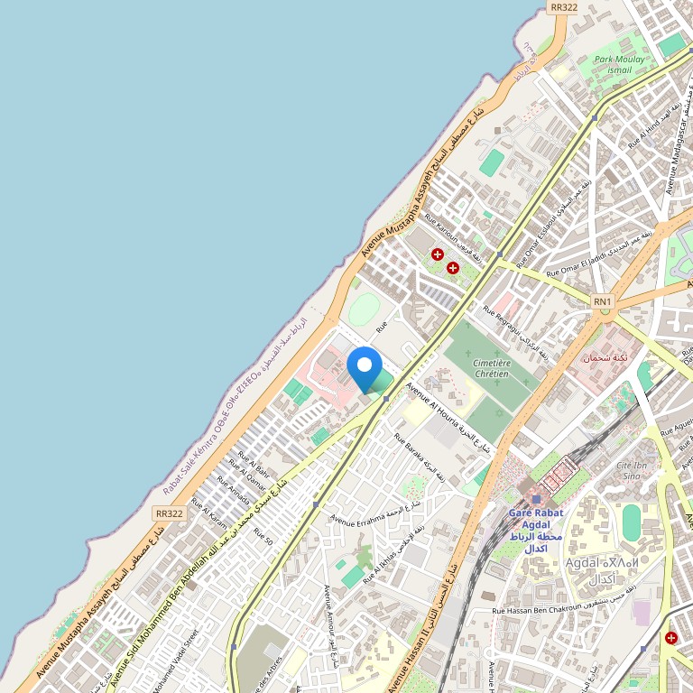 Отель расположен в центре г. Рабат, в 25 км от международного аэропорта.