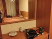 Номер комфортный (шкаф с вешалками, письменный стол со стулом, телевизор-правда давно устаревшей модели, зеркало в коридоре, душевая кабина, полотенцесушитель).