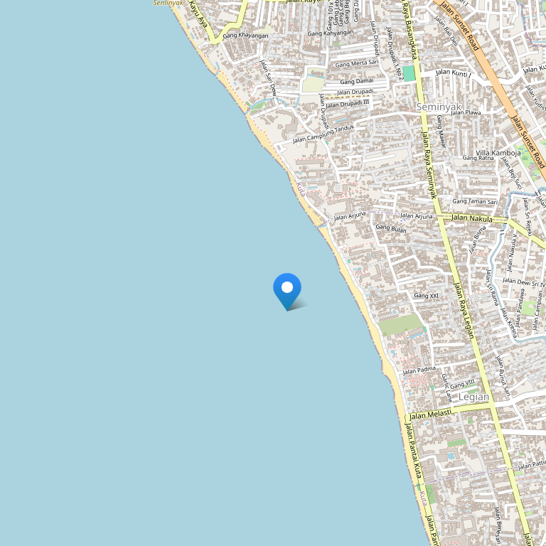 Отель расположен на пляже Легиан Бич, к югу от Семиняка, в полумиле от курорта Кута.