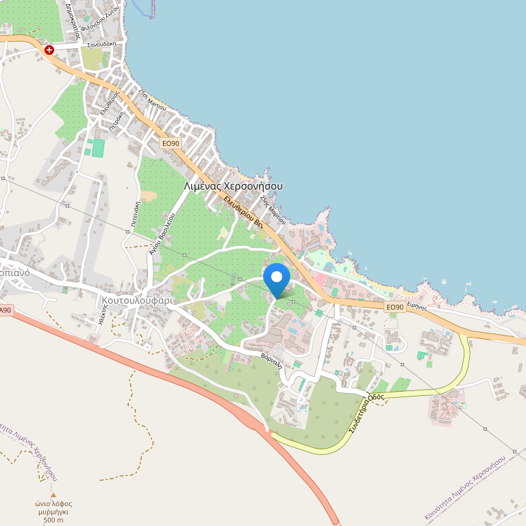 Этот комплекс расположен в красивом и тихом месте на возвышенности рядом с традиционной деревней Кутулуфари. Из окон отеля открывается великолепная панорама на залив Херсониссос.